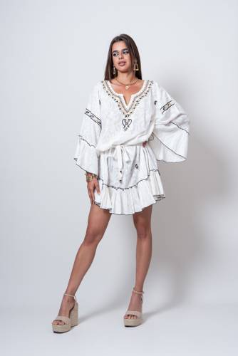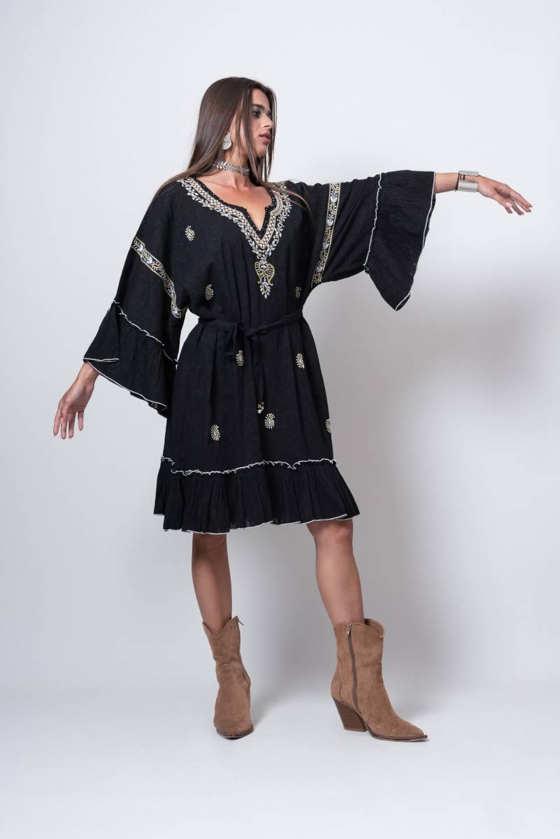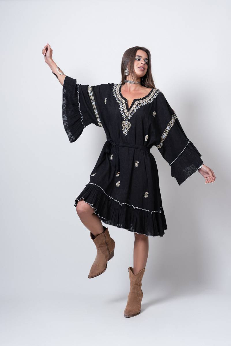 Robe courte ethnique bohème chic, brodée et perlée, ultra féminine de Yaatra, voici la robe de la collection ethnique Cologne !
