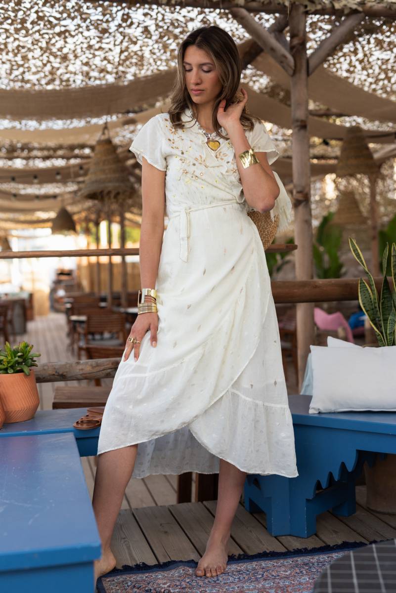 Magnifique cette robe longue cache cœur tendance bohème chic de Yaatra, édition 2025, idéale pour Paris Ile de France.