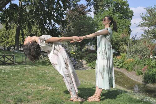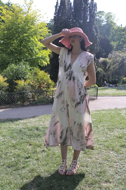 Son imprimé tye die se décline en 2 couleurs, vert ou rose.